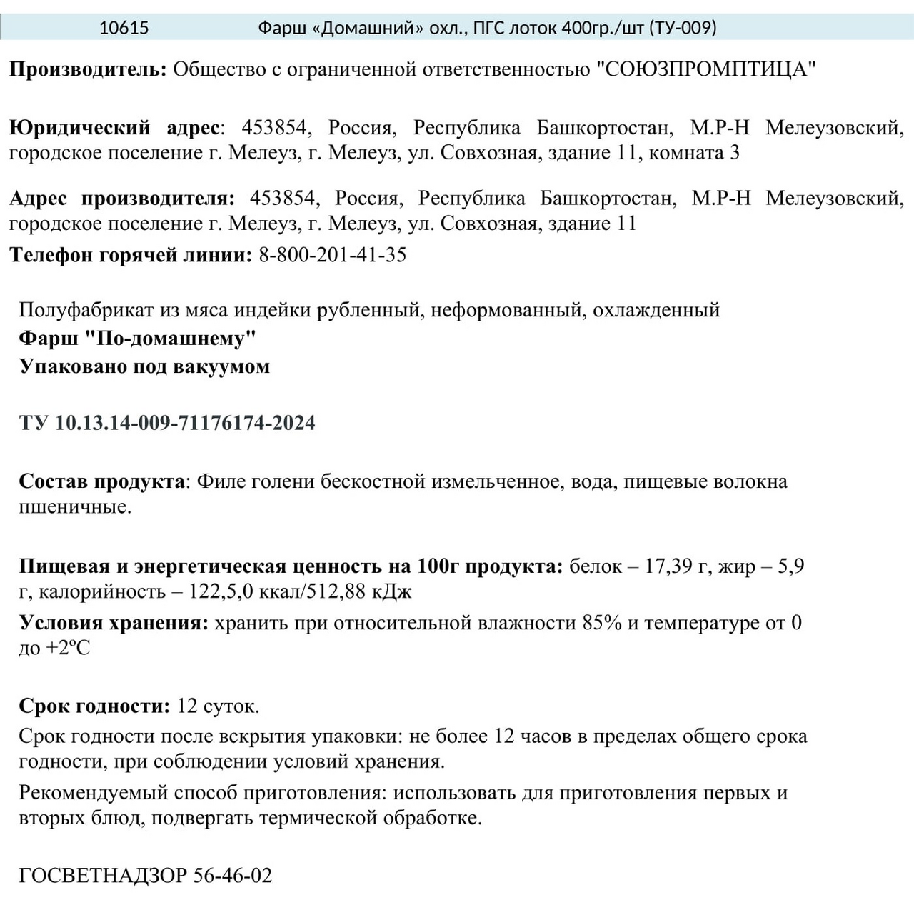 - Тип Фарш из индейки