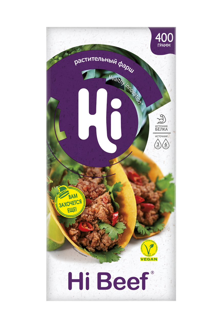 Мы задумали Healty Innovation – Здоровые инновации или Hi!, чтобы создавать еду будущего. Наша миссия - создавать такие продукты питания, которые улучшают здоровье каждого человека и здоровье нашей планеты. Продукты, которые продлевают здоровое долголетие, уменьшают нагрузку на экологию и бережнее относятся как к окружающей нас природе, растениям, так и к животным. Продукт идеально подходит не только для вегетарианцев, но и для тех, кто готов отказаться от мяса, но не готов отказаться от своих вкусовых привычек. Сочный фарш из растительного мяса Hi идеально подайдет для приготовления любых блюд: кесадильи, лазаньи, голубцов и др.