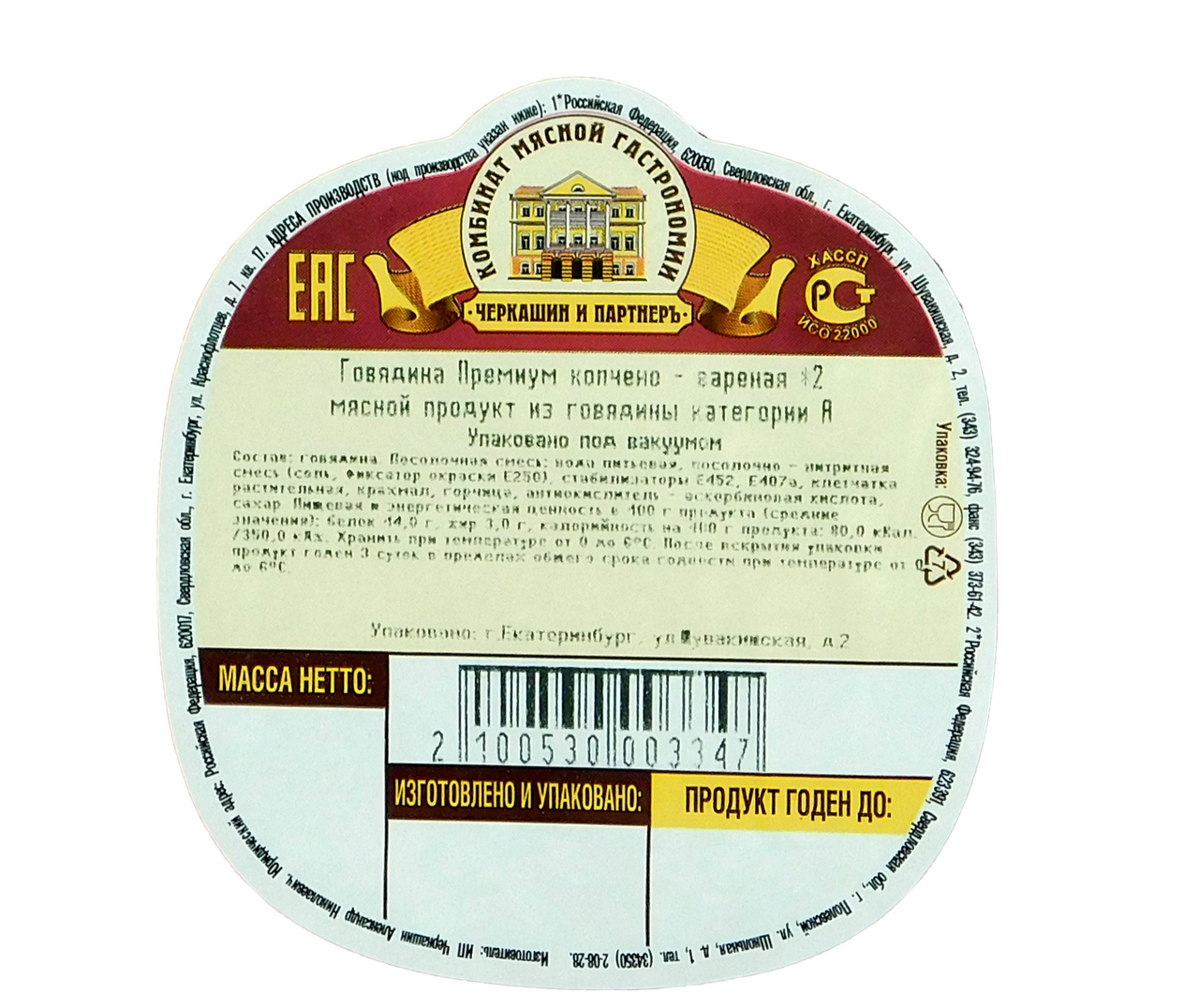 Говядина копчено-вареная Черкашин и Партнеръ Премиум, ~400г