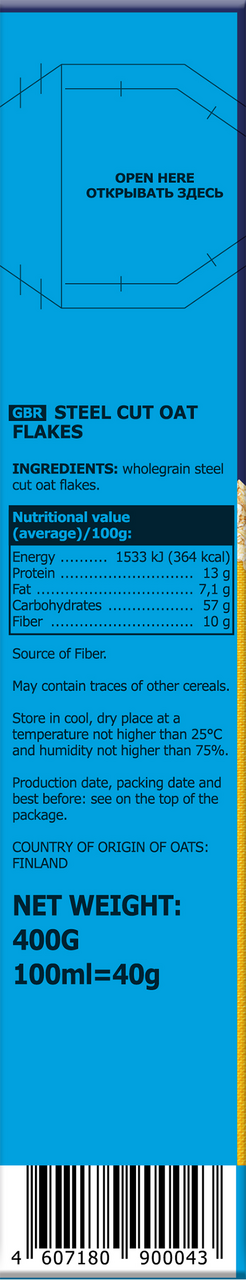Это овсяные хлопья из цельного зерна, пропаренного, резанного и раскатанного до толщина 0,8мм. Такая бережная технология позволяет сохранить всю пользу зерна, неповторимый вкус северной овсянки и придает каше нежную сливочную структуру, любимую многими детьми и взрослыми, которые не хотят тратить много времени на приготовление каши.