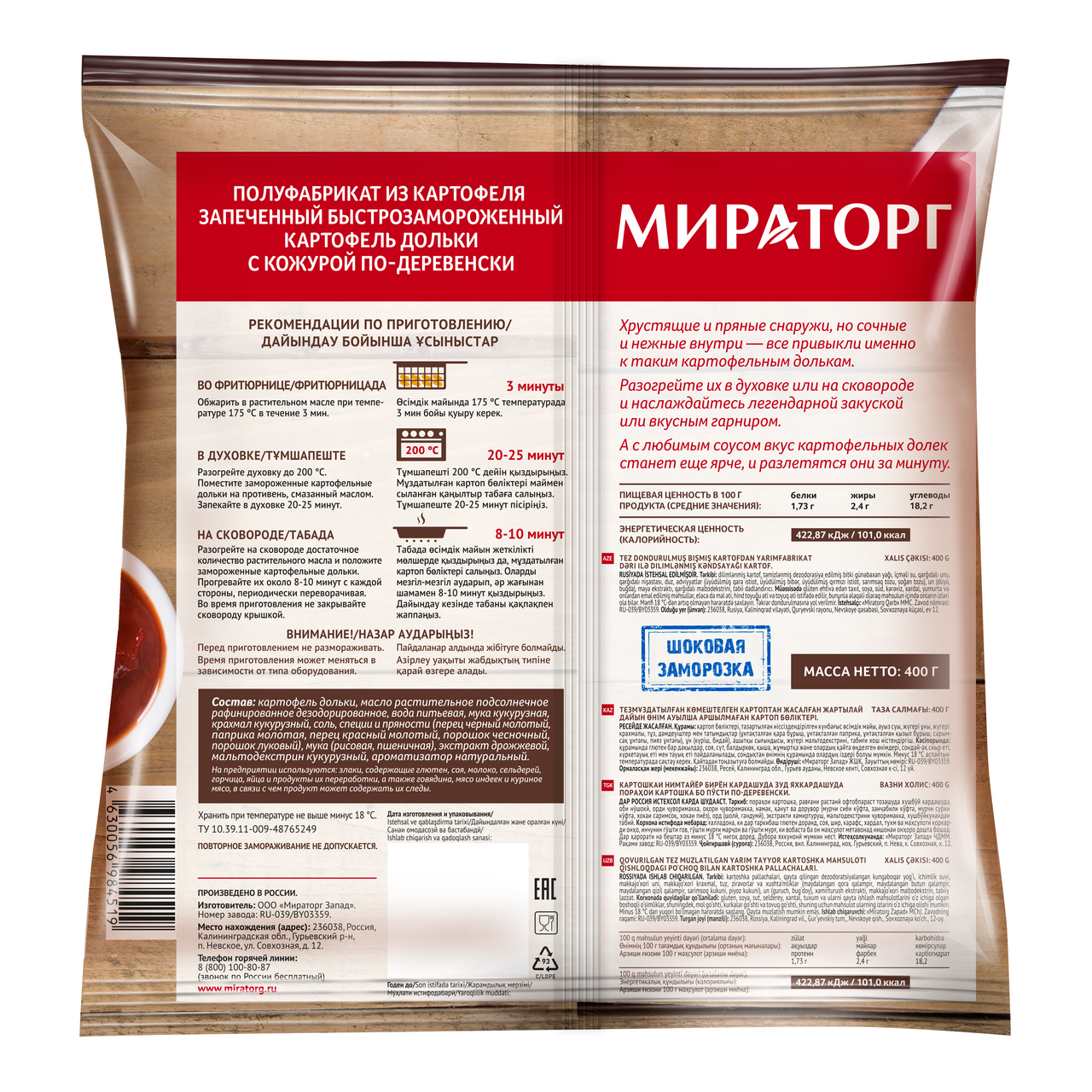 Дольки картофельные Мираторг По-Деревенски замороженные, 400г