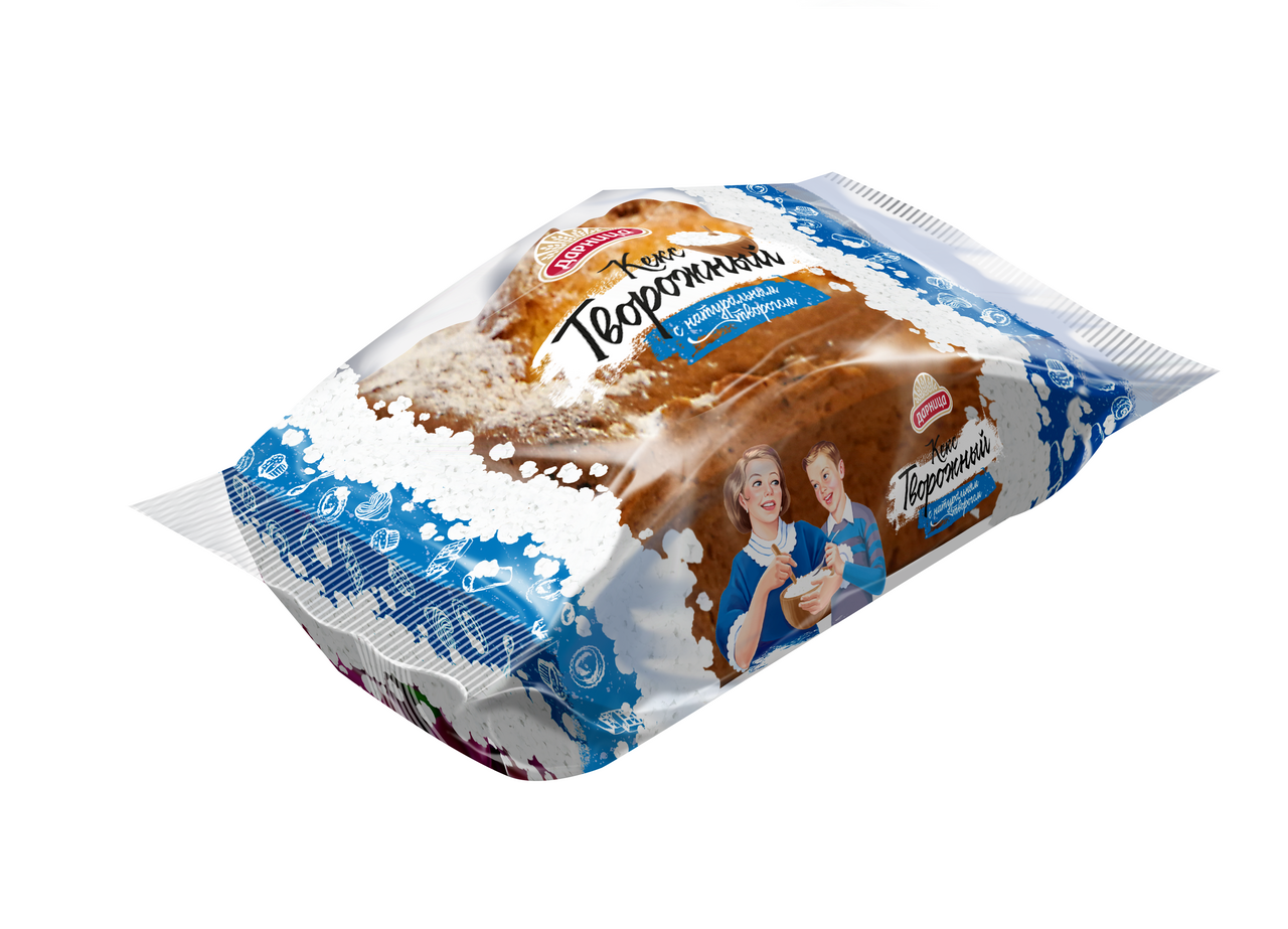 Мука пшеничная хлебопекарная высшего сорта, сахар, продукты яичные, масло подсолнечное, вода, продукт створоженный (масла растительные, в том числе соевое, молоко обезжиренное, загуститель – дикрахмалфосфат оксипропилированный, пшеничные волокна, консерванты: сорбат калия, бензоат натрия, уплотнитель – кальций хлористый, закваска молочнокислых культур, фермент), комплексная пищевая добавка (вода, сахар, эмульгаторы: моно- и диглицериды жирных кислот, эфиры полиглицерина и жирных кислот, Е470а, влагоудерживающие агенты: пропиленгликоль, глицерин, консервант – сорбат калия), пудра сахарная, творог, крахмал кукурузный, разрыхлители: пирофосфат натрия кислый, гидрокарбонат натрия, пищевые волокна из пшеничных отрубей, стабилизатор – ксантановая камедь, ароматизатор.