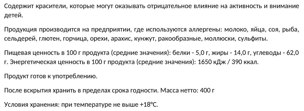 - Энергетическая ценность, ккал/100 г 390