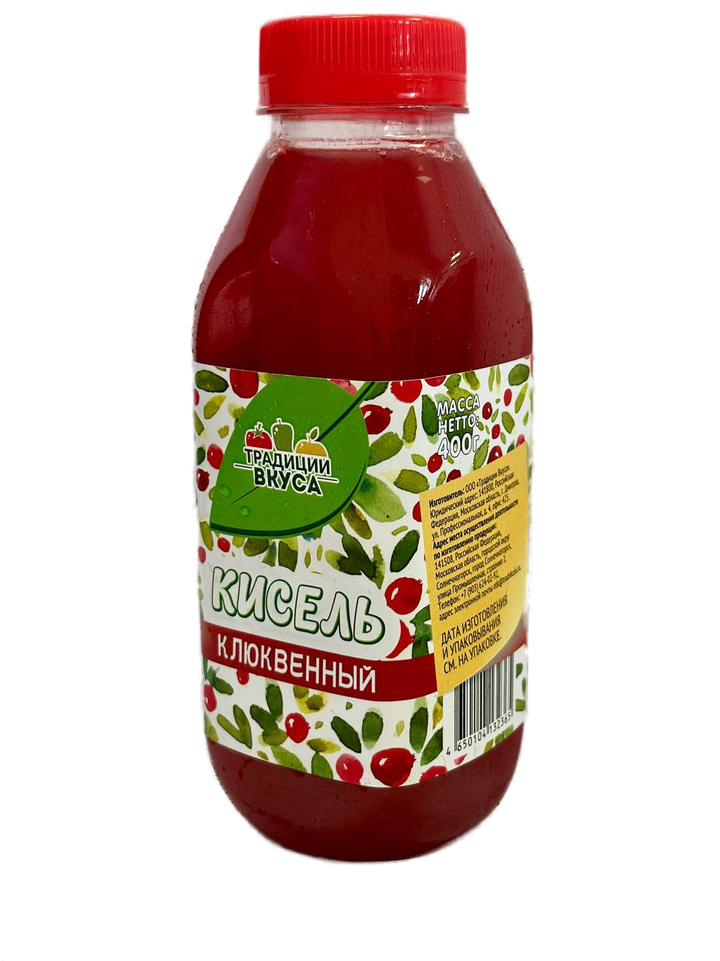 Ароматный кисель из клюквы, приготовленный на глюкозно-фруктозном сиропе и тапиоковом крахмале. Нежный, чуть тягучий, не слишком густой, с кусочками ягод. Во вкусе — сочная кислинка и умеренная сладость.