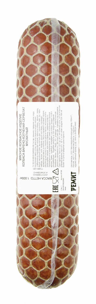 Колбаса Ремит Сервелат мускатный варено-копченая, ~400г