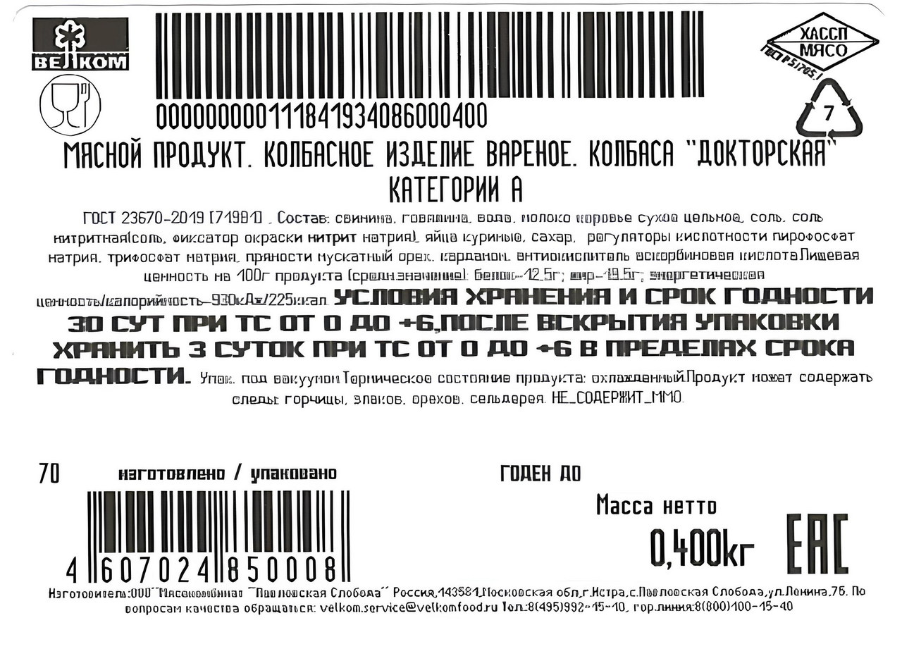Это мясной продукт категории А. В его составе нет ГМО, заменителей мяса и сои. Всё это говорит только в пользу продукта, который приходится по душе и гурманам, и любителям аппетитных колбас. Из Докторской можно приготовить отменные сэндвичи, нежные бутерброды, вкусные салаты, а также эту колбасную продукцию можно употреблять в обжаренном виде. В составе колбасы нет жира, она поставляется в натуральной оболочке. Строгое соответствие ГОСТу позволяет быть уверенным в экологической безопасности и высоком качестве колбасной продукции.