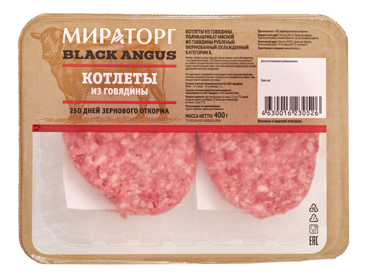 Котлеты из говядины Мираторг Black Angus охлажденные, 400г