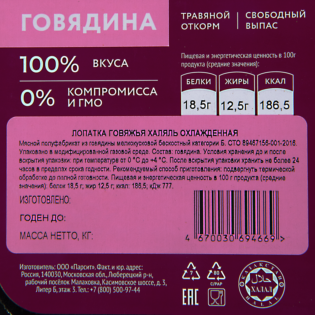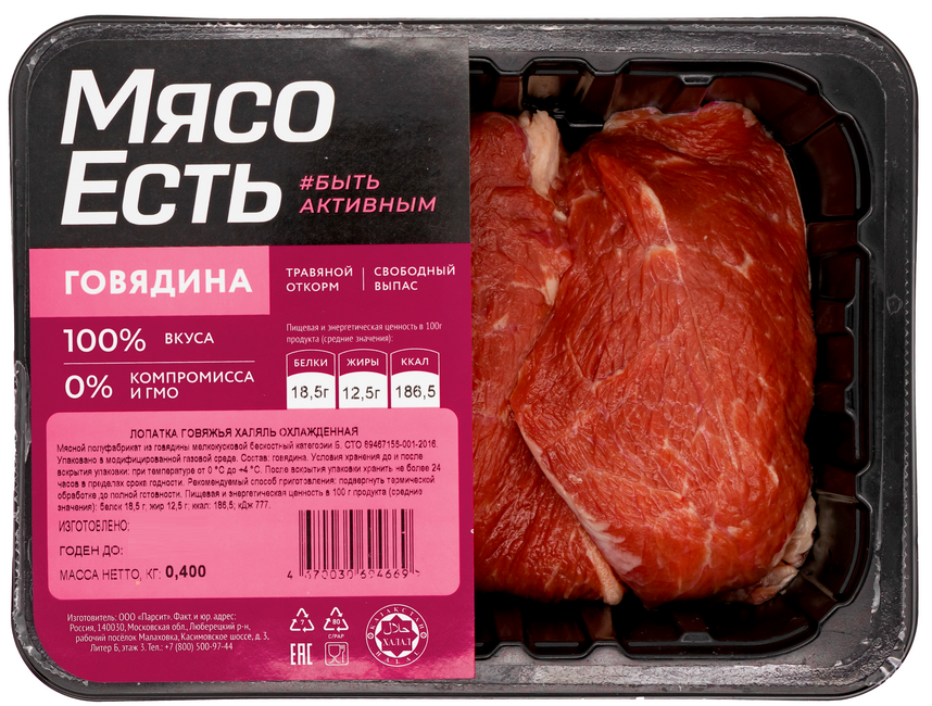 Лопатка говяжья Мясо есть! Халяль охлажденная, 400г