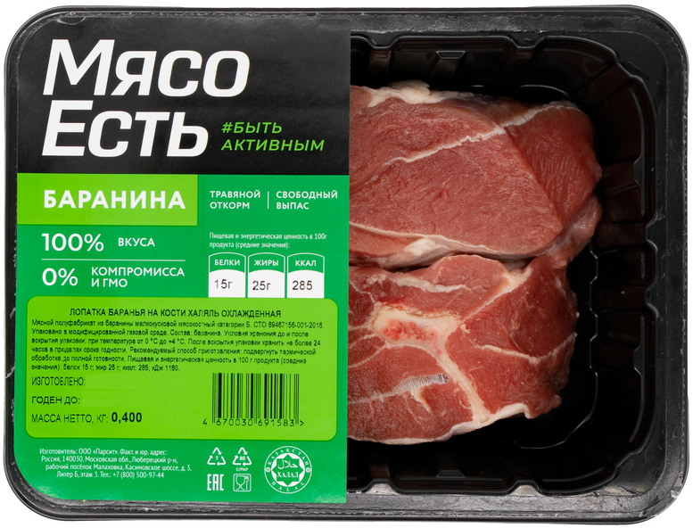 Лопатка Мясо есть! Халяль баранья на кости охлажденная, 400г
