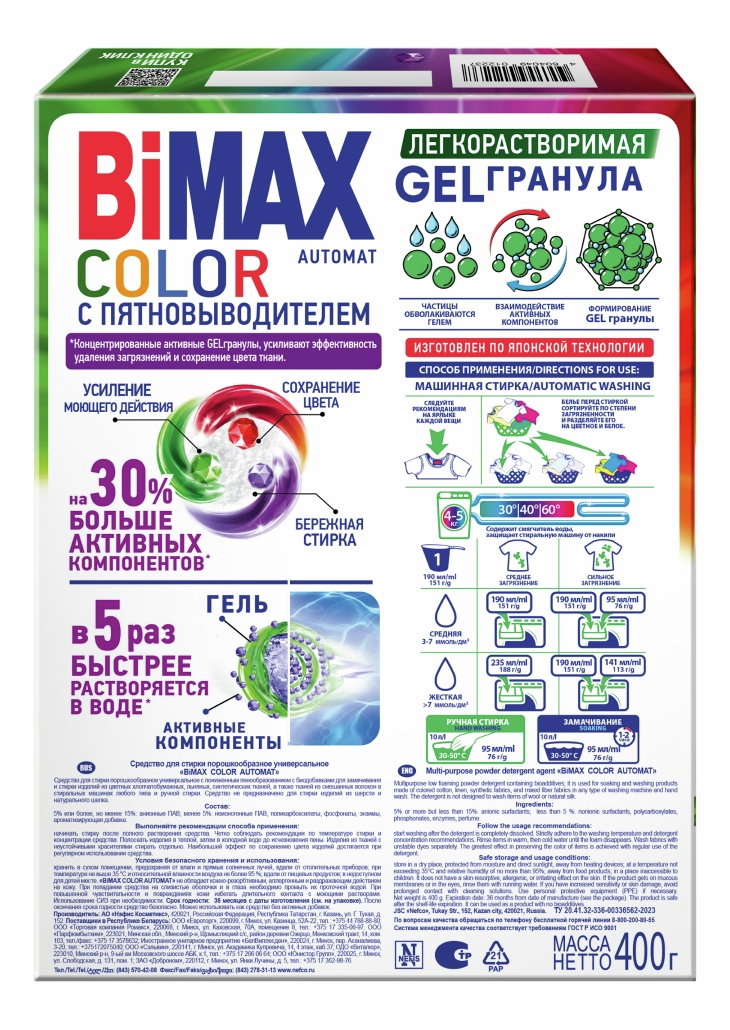 Стиральный порошок Bimax Color сила цвета автомат, 400г