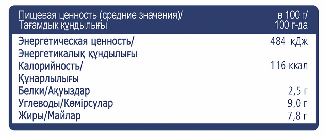- Энергетическая ценность, ккал/100 г 116