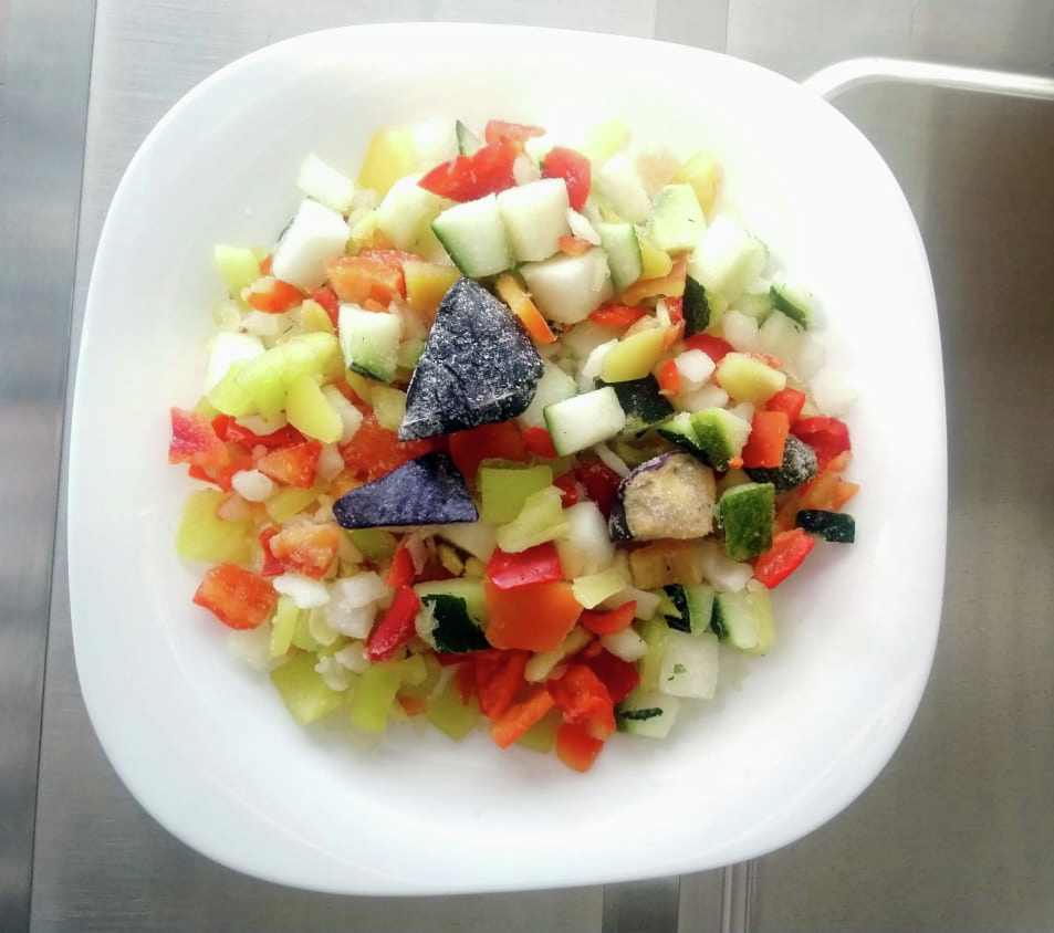 Баклажан, цуккини, сладкий перец, лук, прованские травы (базилик, тимьян, орегано, майоран).