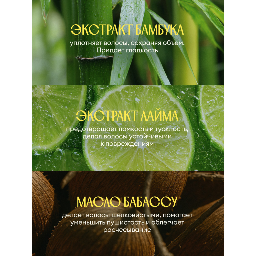 Бальзам Solzao Объём и уплотнение Jungle Volume Сила бразильских джунглей для объёма и уплотнения тонких и непослушных волос. Бальзам-ополаскиватель для волос Сользао создан для бережного ухода и придания объема у корней. Его формула защищает от секущихся кончиков, дарит легкость в укладке и дополнительную защиту от негативных факторов окружающей среды. Экстракт бамбука в кондиционере укрепляет и уплотняет волосы, увеличивая объём, и увлажняет кожу головы, экстракт лайма предотвращает ломкость и тусклость, делая волосы устойчивыми к повреждениям, а масло бабассу делает волосы шелковистыми и облегчает расчесывание. В базе - шикимовая кислота в паре с аргинином, которые восстанавливают структуру волос по всей длине. Аромат с технологией Vivascentz доказано влияет на настроение - помогает справляться с хаосом дня и дарит заряд энергии. Уходовая косметика предназначена для тех, кто стремится сохранить здоровье и красоту волос.