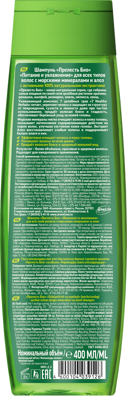 Шампунь Прелесть Био питание и увлажнение, 400мл