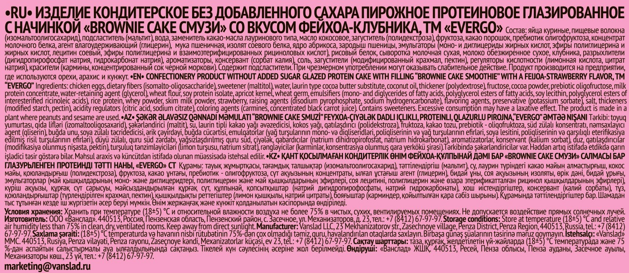 Пирожное протеиновое Evergo брауни смузи клубника с фейхоа, 40г