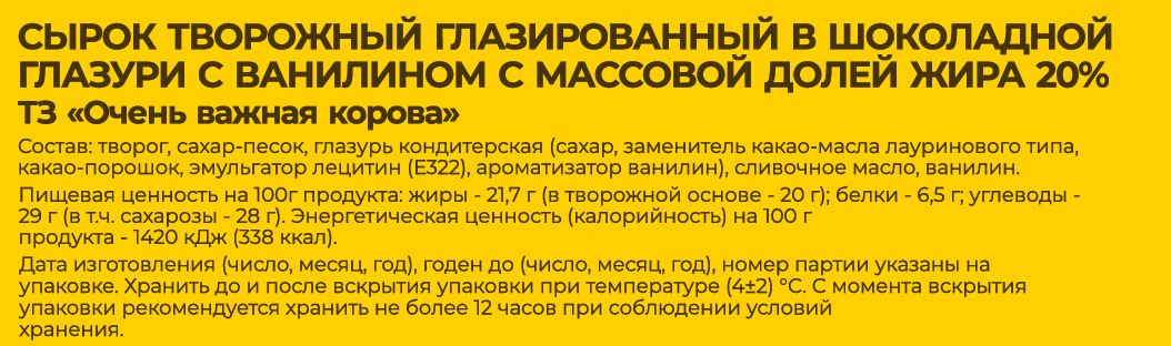 Сырок творожный глазированный Очень важная корова с ванилью 20%, 40г