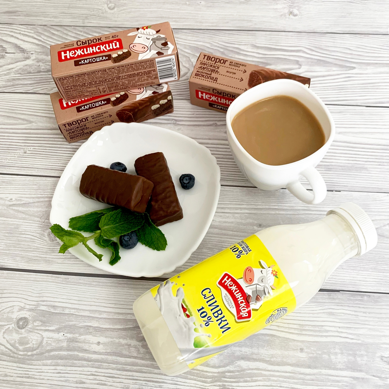 Творог, шоколад молочный (сахар, какао-масло, сухое цельное молоко, какао-масса, эмульгатор: соевый лецитин, натуральная ваниль), печенье (мука пшеничная хлебопекарная, сахарная пудра, жир кондитерский (смесь подсолнечного и пальмового масел), инвертный сироп (сахар, вода, регуляторы кислотности (гидрокарбонат натрия, лимонная кислота)), соль, разрыхлители (гидрокарбонат натрия, карбонат аммония), меланж яичный сухой, молоко сухое обезжиренное, эмульгатор - лецитины, ароматизатор Ванилин), сахар, сливочное масло, какао-порошок, ароматизатор.