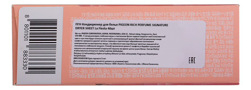 Салфетки-кондиционер для белья Pigeon La Fiesta 40шт, 400мл
