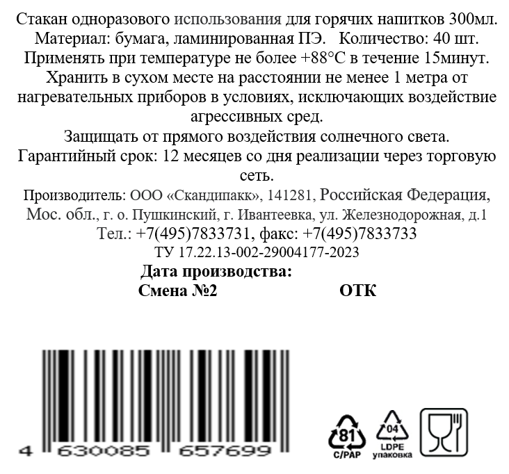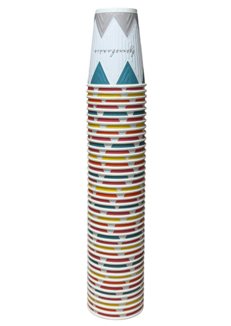 Стакан одноразового использования из ламинированной бумаги с двойной стенкой (наружная стенка из бумаги с индивидуальным выдавливанием), для горячих и холодных напитков/продуктов. Объем: 300мл - 40шт. Верхний край стакана с вальцовкой. Стаканы могут использоваться с крышкой соответствующего диаметра. Крышка должна закрываться герметично.