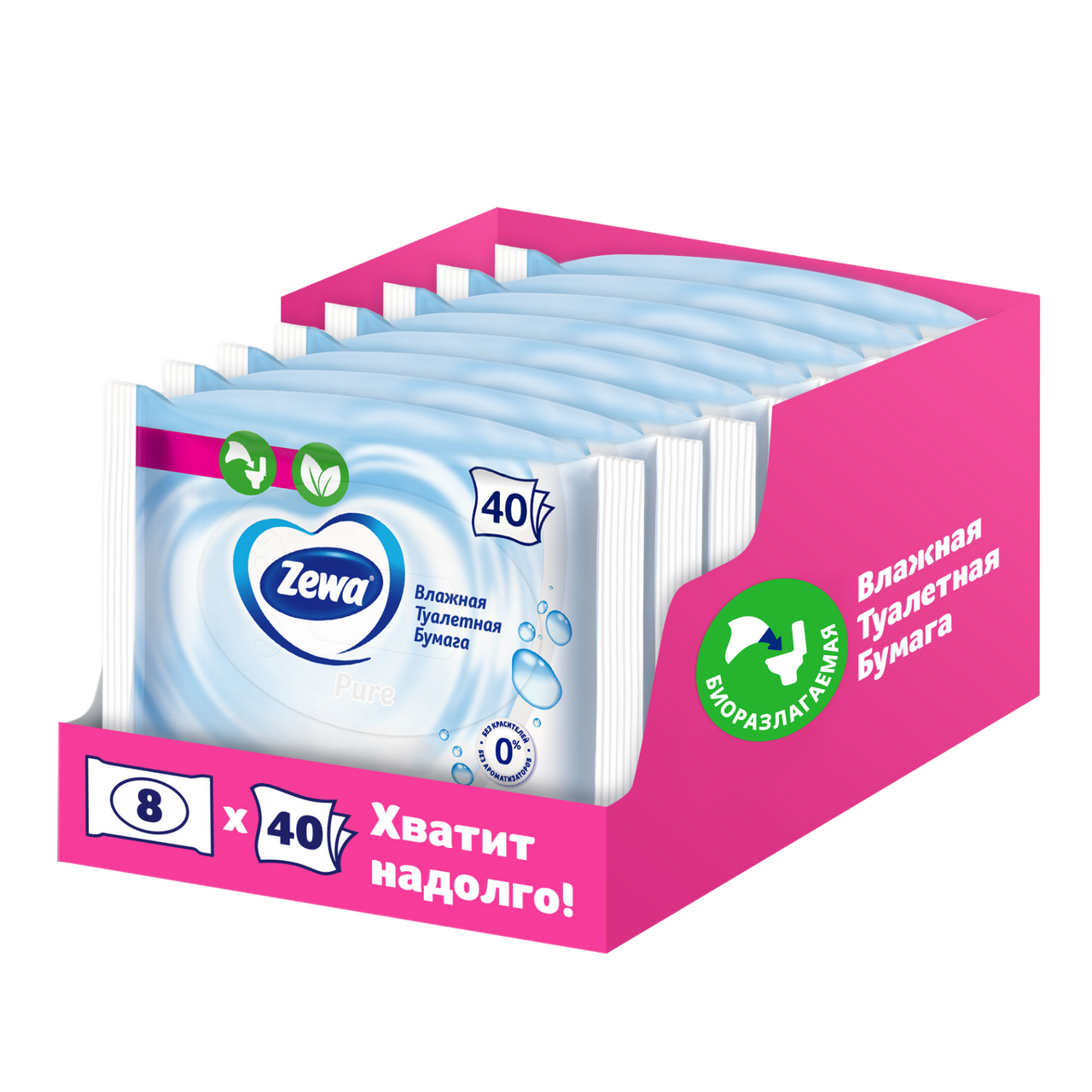 Влажная туалетная бумага Zewa Pure, 40 листов
