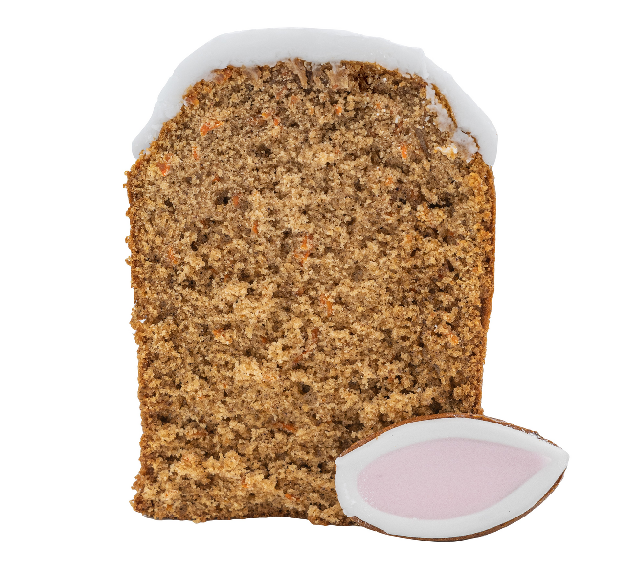 Ароматный и нежный морковный кулич, обладающий плотной влажной структурой с мелкой пористостью. Сверху кулич покрыт сахарной помадкой. Необычный вид десерту придает декор в виде Кроличьих ушек. Этот оригинальный десерт станет украшением праздничного стола, полюбившись и взрослым, и детям.