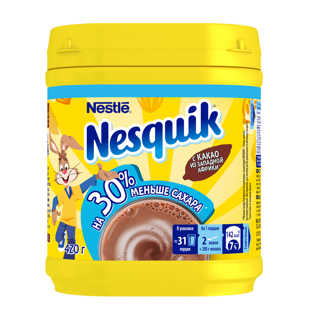 Какао-напиток Nesquik быстрорастворимый на 30% меньше сахара, 420г
