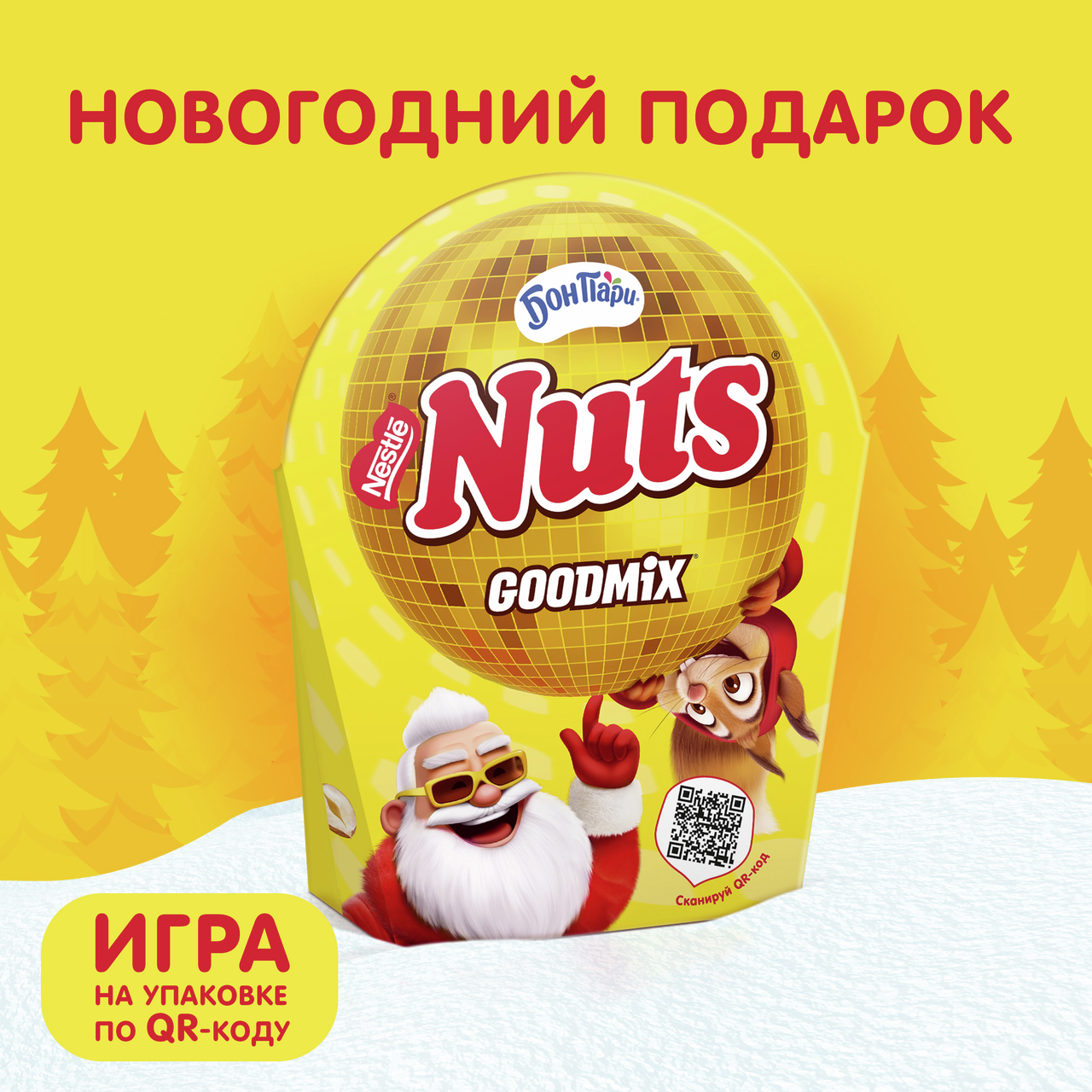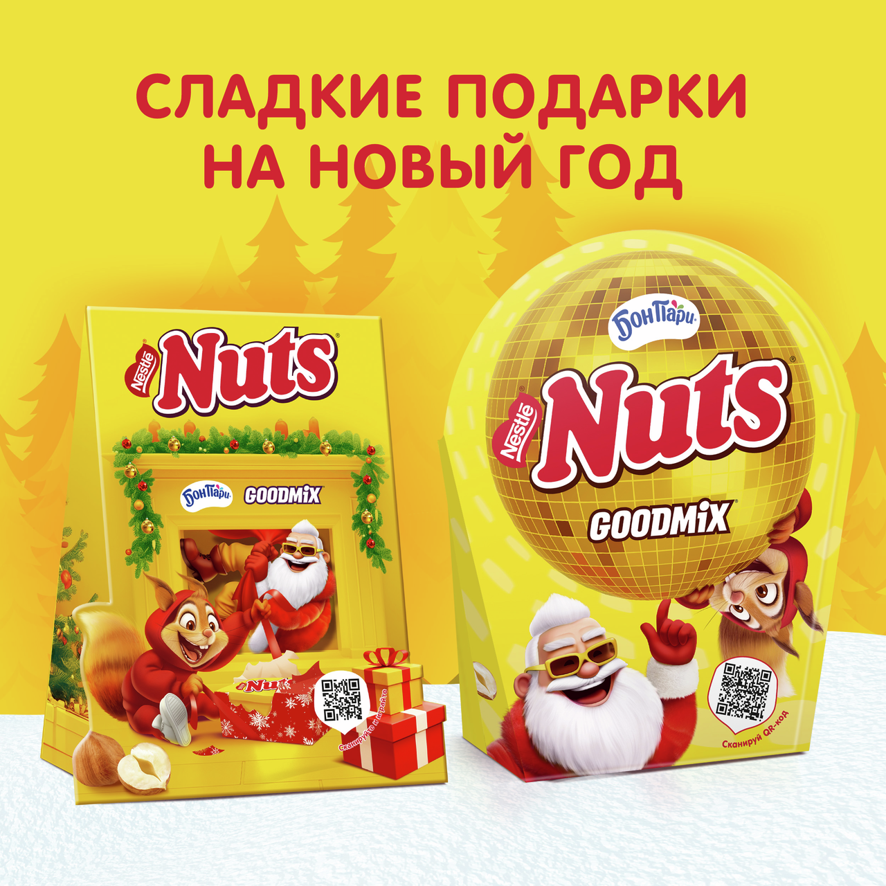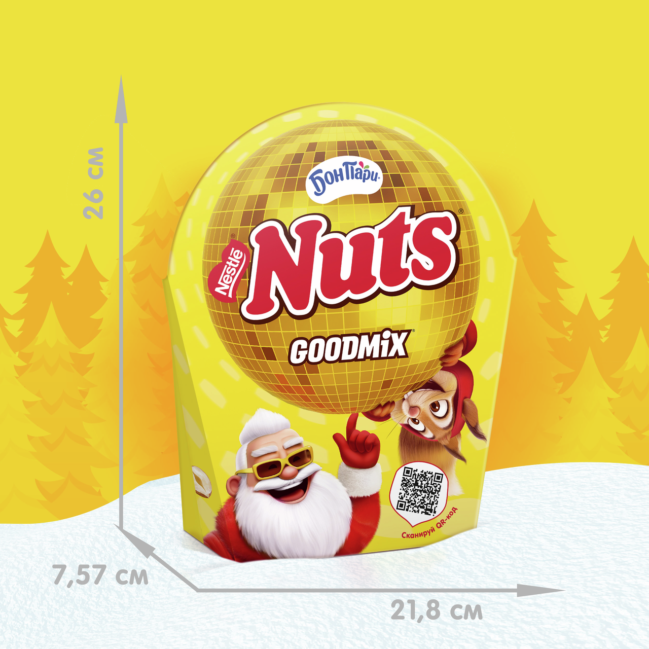 Бон Пари Кошмарики: патока, сахар, желатин, вода, регуляторы кислотности лимонная кислота, цитрат натрия 3-замещенный, концентрированный яблочный сок, агент желирующий пектины, красители антоцианы получен из моркови, уголь растительный, ароматизаторы натуральные, масло пальмовое, глазирователь воск карнаубский, Бон Пари Duo Jelly Corgi: концентрированный яблочный сок, масло пальмовое, ароматизаторы натуральные, сироп карамельный, глазирователь воск карнаубский, красители антоцианы, экстракт паприки, куркумин; Конфета с фундуком и арахисом: фундук, эквивалент масла какао масло пальмовое, масло ши, арахис, какао тертое, белок яичный сухой, ароматизаторы натуральные, регулятор кислотности лимонная кислота, соль; Nuts Duo Мороженое и печенье: мука пшеничная содержит глютен, молочный жир, молоко сухое цельное, эквивалент масла какао масло пальмовое, масло ши, жир специального назначения из подсолнечного масла, эмульгаторы лецитины, Е476, ароматизаторы натуральные, белок яичный сухой, какао-порошок, разрыхлители Е500II, E503II, регулятор кислотности лимонная кислота, соль; Goodmix Salted caramel taste Мини: молочный жир, вода, крупа рисовая, эмульгаторы лецитины, Е476, какао-порошок с пониженным содержанием жира, ароматизаторы натуральные, соль, вещество для обработки муки сульфат кальция, разрыхлитель гидрокарбонат натрия; Хрутка: крупа кукурузная, крупа гречневая, эмульгаторы лецитины, E476, какао-порошок, ароматизатор натуральный, соль, разрыхлитель гидрокарбонат натрия, вещество для обработки муки сульфат кальция; Goodmix Salted Peanut taste Мини: арахис, сыворотка молочная сухая, эквивалент масла какао масло пальмовое, масло ши, молочный жир, вода, ароматизаторы натуральные, эмульгаторы лецитины, Е476, какао-порошок с пониженным содержанием жира, соль, вещество для обработки муки сульфат кальция, разрыхлитель гидрокарбонат натрия.