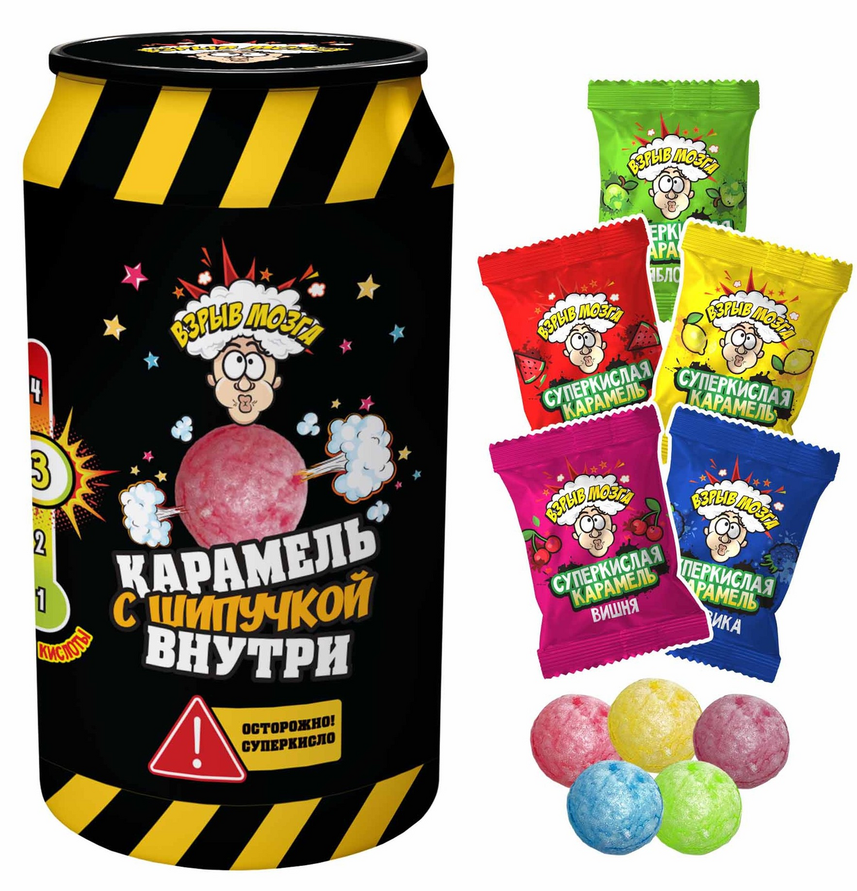 Суперкислая карамель с шипучим центром упакована в прикольную банку. В банке микс 5 вкусов: вишня, ежевика, лимон, арбуз и яблоко. Супер кислая карамель с шипящим центром устроят настоящий взрыв мозга. Яркий дизайн и удобный блок для размещения в прикассовой зоне.