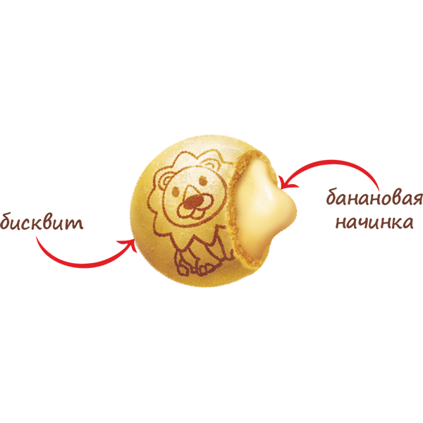 Путешествие по сафари продолжается. Хрустящее печенье с банановой начинкой создано специально для того, чтобы стать идеальным и сытным перекусом. Продукт производится в виде шарика с изображением веселых зверушек, а внутри - нежная банановая сердцевинка. Шарики из хрустящего печенья с нежной молочной начинкой порадуют вас гармоничным вкусом, а благодаря веселым картинкам зверюшек, превратят чаепитие в игру.