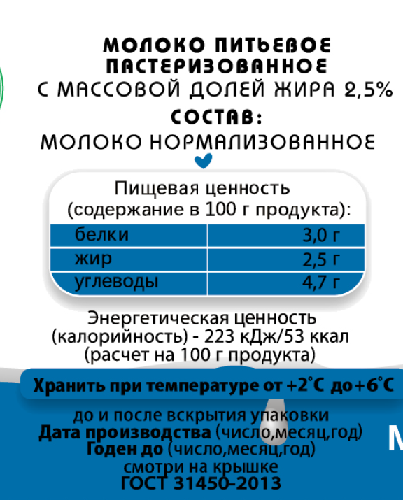 - Жирность, % 2.5
