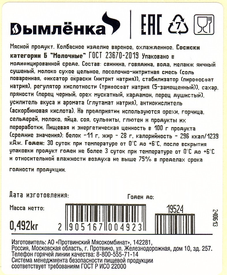 Приготовлены из мяса говядины и свинины с добавлением небольшого количества молока. Особый аромат и вкус получается за счет наличия в составе муската и черного перца. Они имеют классическую мягкую упругую консистенцию, естественный светло-розовый цвет, аппетитный аромат, а главное нежный мясной вкус. С ними можно приготовить хот-доги - отличная альтернатива шашлыку. Если необходим быстрый и сытный ужин - достаточно положить их на несколько минут в кипящую воду. Сосиски быстро устраняют чувство голода и дают насыщение организму.