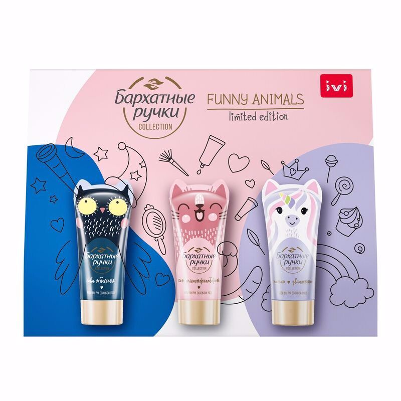 Подарочный набор Бархатные ручки Funny Animals крем для рук женский, 45мл х 3шт