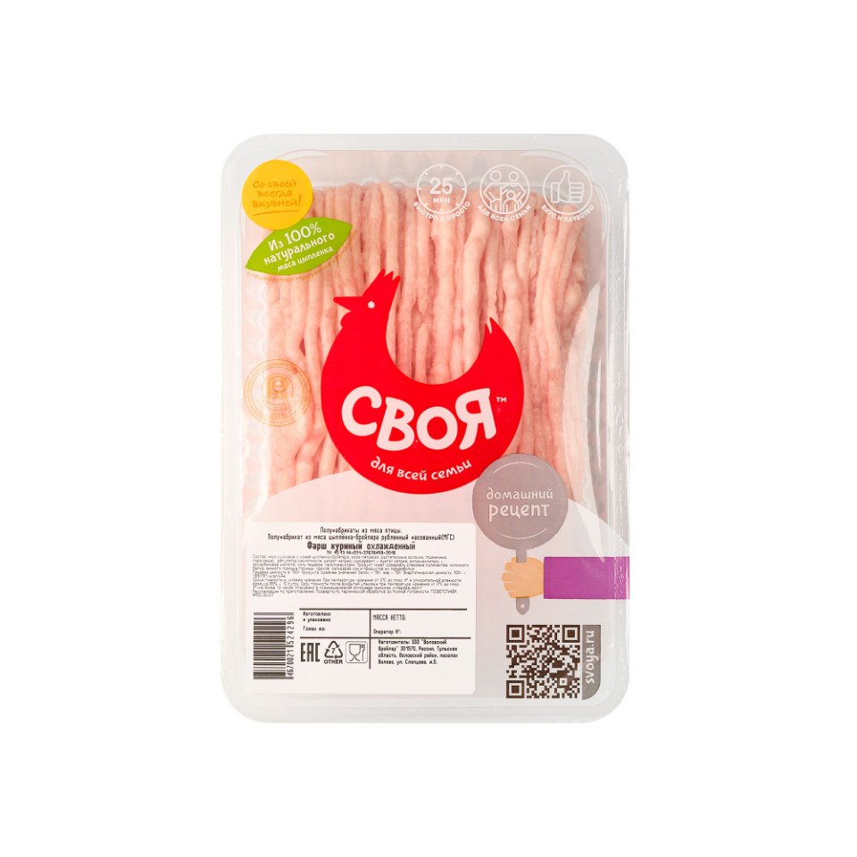 Приготовлен из филе грудок птицы. Продукт не содержит никаких пищевых добавок. Только мясо. Он обладает приятной консистенцией, нежным вкусом и деликатным ароматом. Благодаря невысокому содержанию жира фарш подходит для создания диетических блюд. Из него можно приготовить котлеты, тефтели, начинку для лазаньи и пельменей, рулеты и многое другое. А если просто обжарить куриный фарш на сковороде с овощами, получится питательный и легкий ужин.