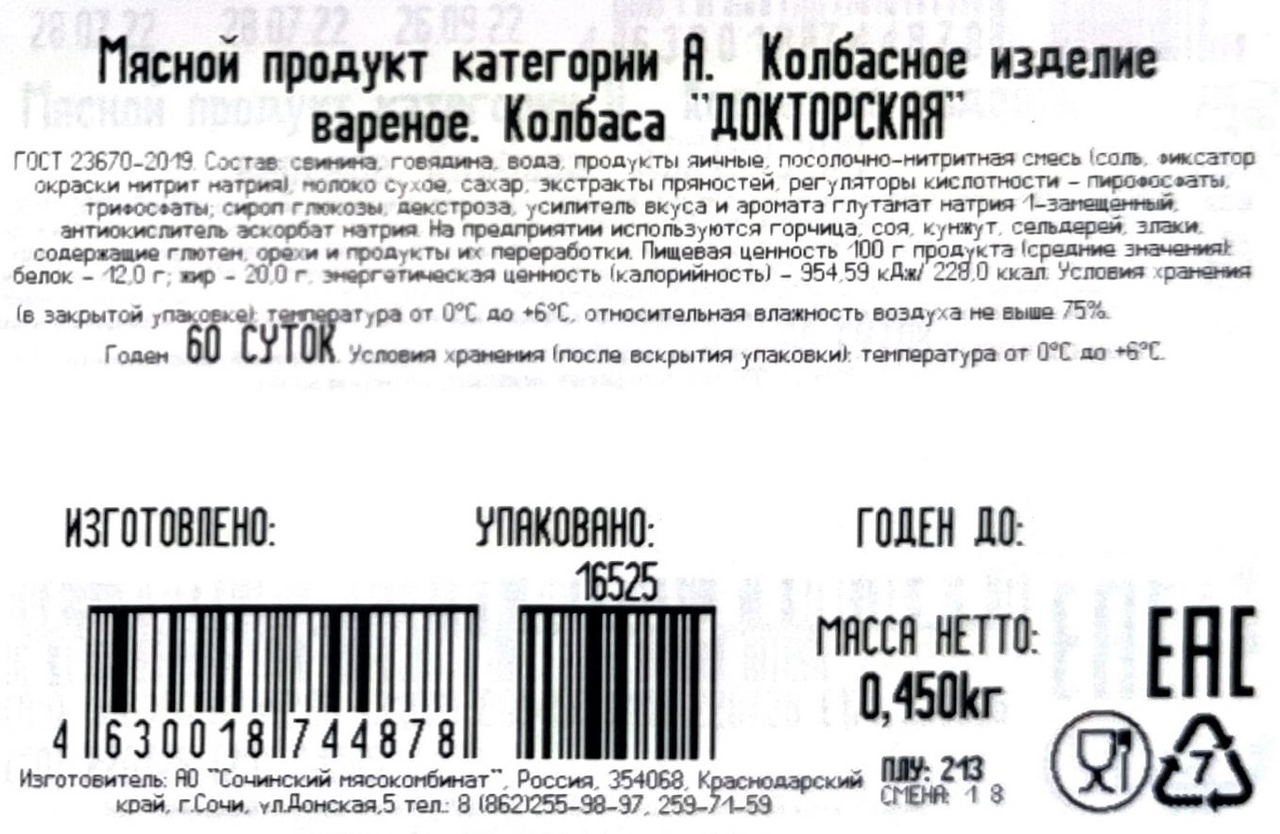 Докторская колбаса, изготовленная по рецептуре ГОСТ, это традиционный продукт, знакомый с детства нежным вкусом. Для производства используется сырье высшего сорта - говядина, постная свинина, молоко и куриные яйца. Неповторимый аромат легендарной диетической колбасе придают черный и душистый перец, пряный и ненавязчивый мускатный орех. Благодаря проницаемой целлофановой оболочке продукт приобретает характерный аромат копчения.