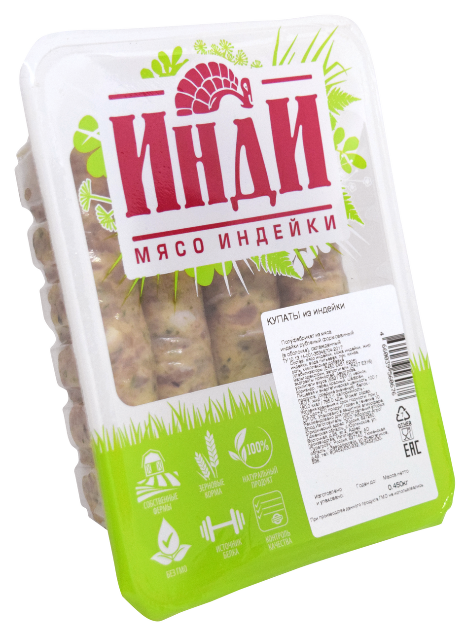 Это полуфабрикат, приготовленный из филе бедра и грудки индейки с добавлением специй и ароматных трав. Купаты полностью готовы к термической обработке (по желанию, вы можете их приготовить на открытом огне, обжарить на сковороде или запечь в духовке). Вся продукция Индилайт производится из свежего охлажденного мяса индейки; это предприятие полного цикла и контроль качества осуществляется на всех этапах - от инкуб��ции до переработки. Современная технология упаковки с применением защитной среды позволяет сохранить полезные свойства индюшатины в течение 10 дней без добавления консервантов. Идеальное сочетание для жарки на открытом огне или запекания в духовке. Мясной деликатес готовится из мяса птицы с добавлением ароматных пряностей – чеснока, кориандра, красного перца и шафрана. Отличный продукт, который быстро готовится и отлично сочетается с самыми разнообразными гарнирами.