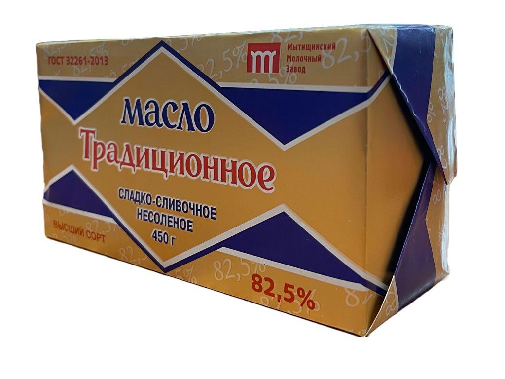 Масло традиционное сладко-сливочное несоленое 82.5% замороженное, 450г
