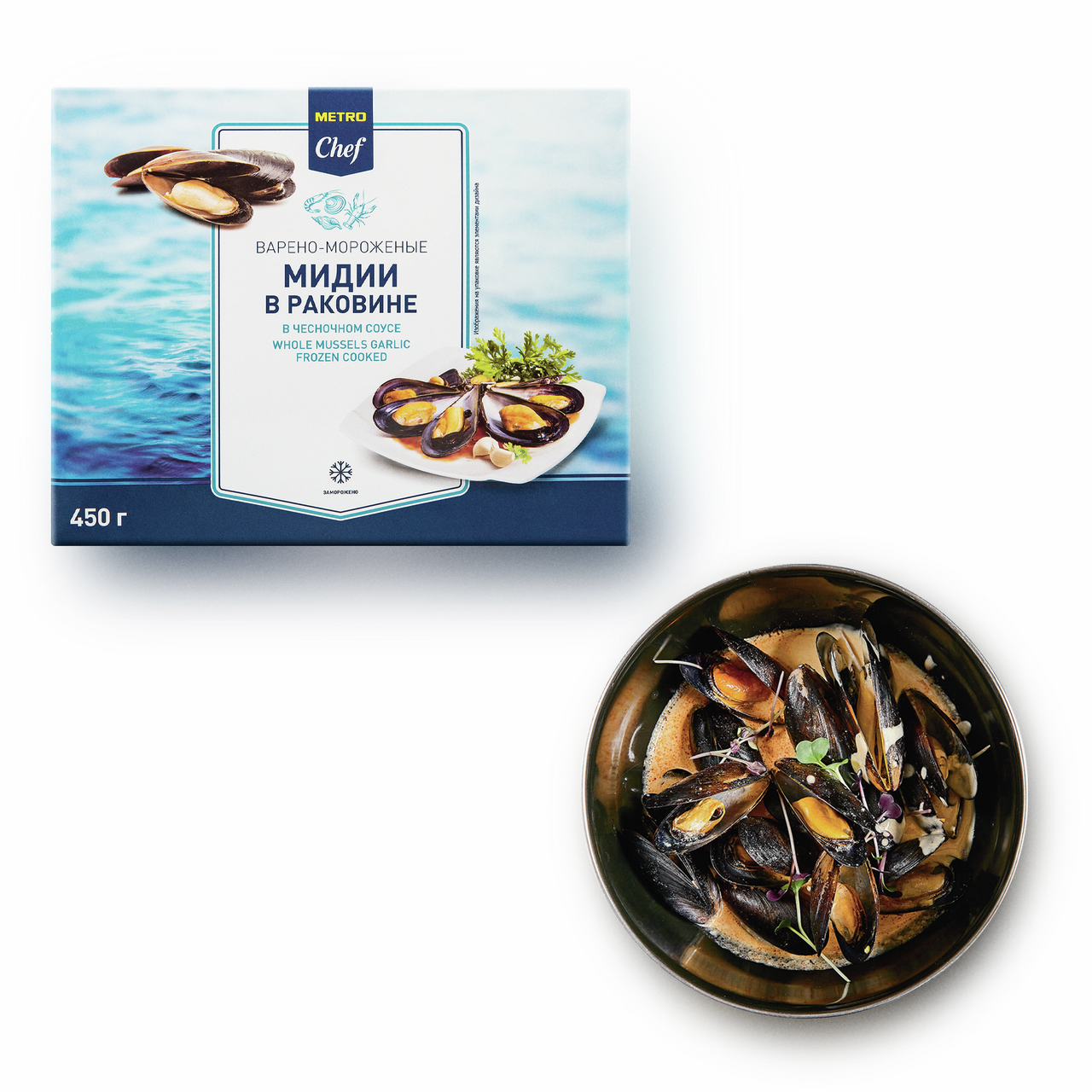 METRO Chef Мидии створки в чесночном соусе, 450г