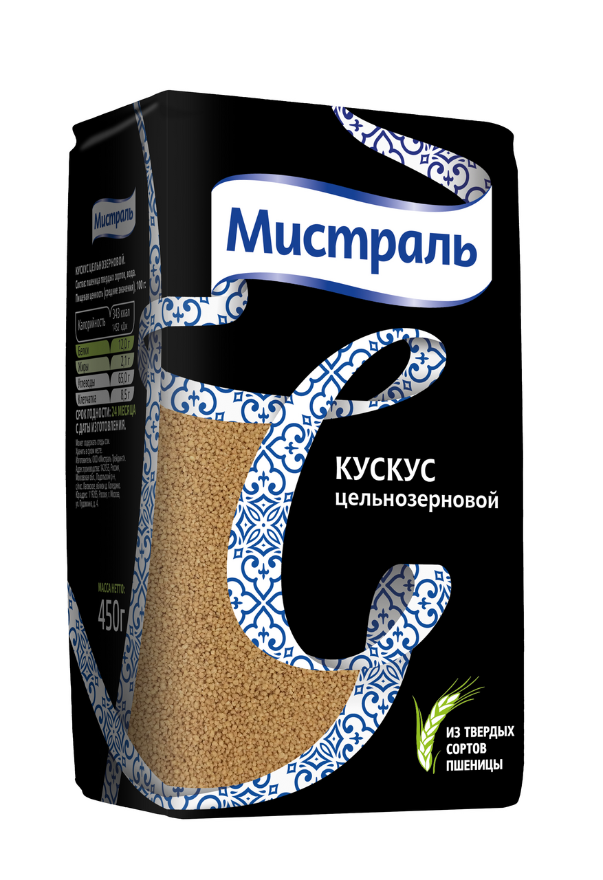 Кускус – это пшеничная крупа и одноименное блюдо, история которого начинается на Ближнем Востоке. Цельнозерновой кускус от Мистраль изготавливается из твердых сортов пшеницы durum и воды, благодаря чему он является источником белка и сложных углеводов, а также продуктом с высоким содержанием клетчатки. Полезные свойства цельнозернового кускуса по достоинству оценят приверженцы здорового питания. Кускус имеет широк��е применение в кулинарии – это превосходный гарнир для горячих блюд, отличное дополнение к супам и салатам. Как десерт кускус гармонично сочетается с сухофруктами, медом и орехами, а также служит основой для выпечки.
