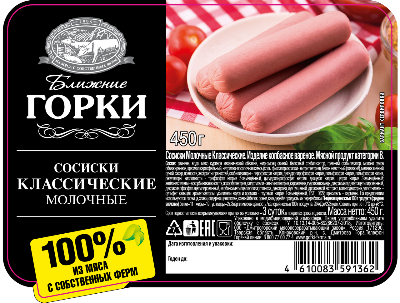 Сосиски Ближние горки Молочные классические, 450г