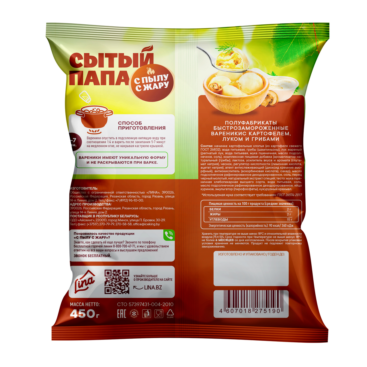 Вареники Сытый папа с картошкой луком и грибами, 450г