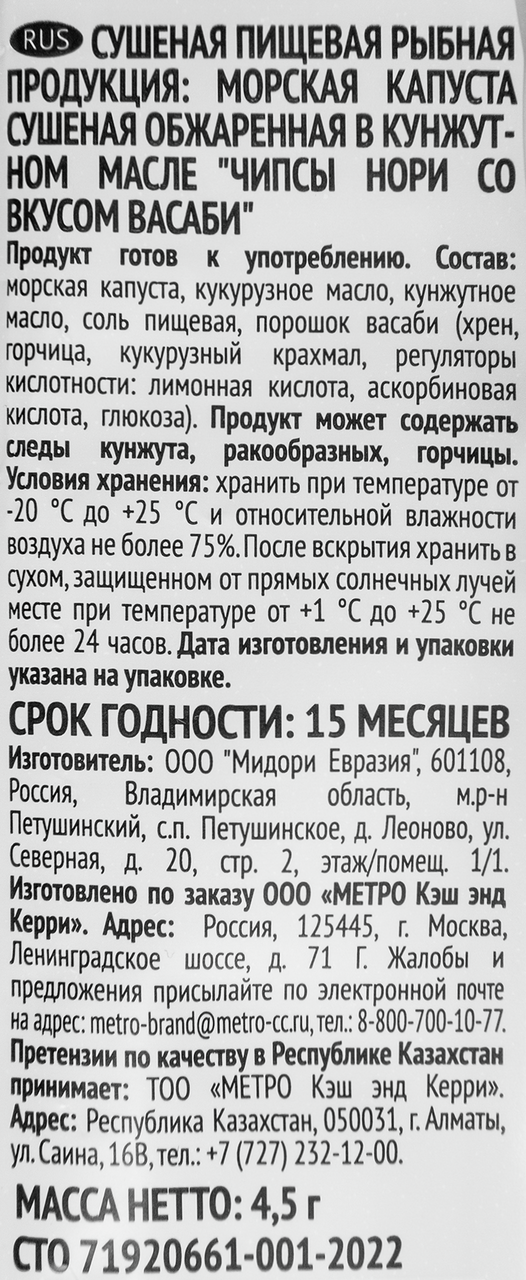 RIOBA Чипсы нори кимчи, 4.5г x 4 шт - острый вариант классического продукта из листьев морской капусты, напоминающего бумагу. Засушенные и обжаренные до хруста в оливковом масле пластины обильно приправлены жгучим перцем, чесноком и имбирем. Нори являются одним из символов корейской и японской кухни и служат основой многим блюдам. Чипсы RIOBA могут употребляться как отдельно, так в качестве компонента для суши или лапши на бульоне.
