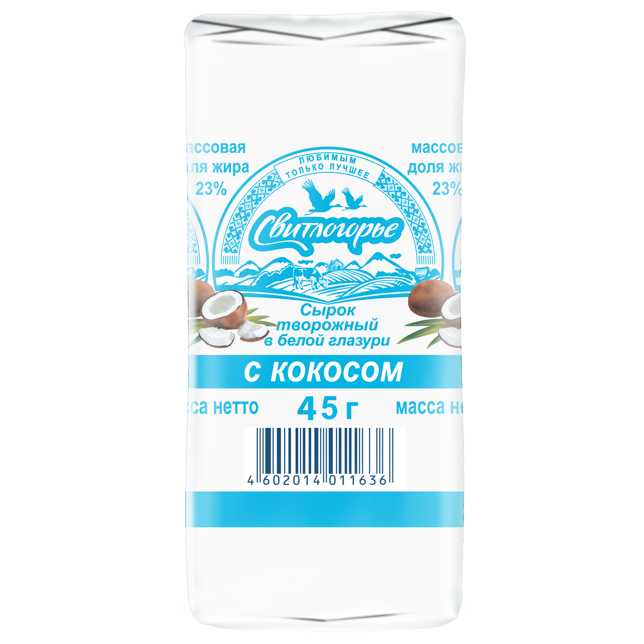 Сырок творожный глазированный Свитлогорье с кокосом в белой глазури 23%, 45г