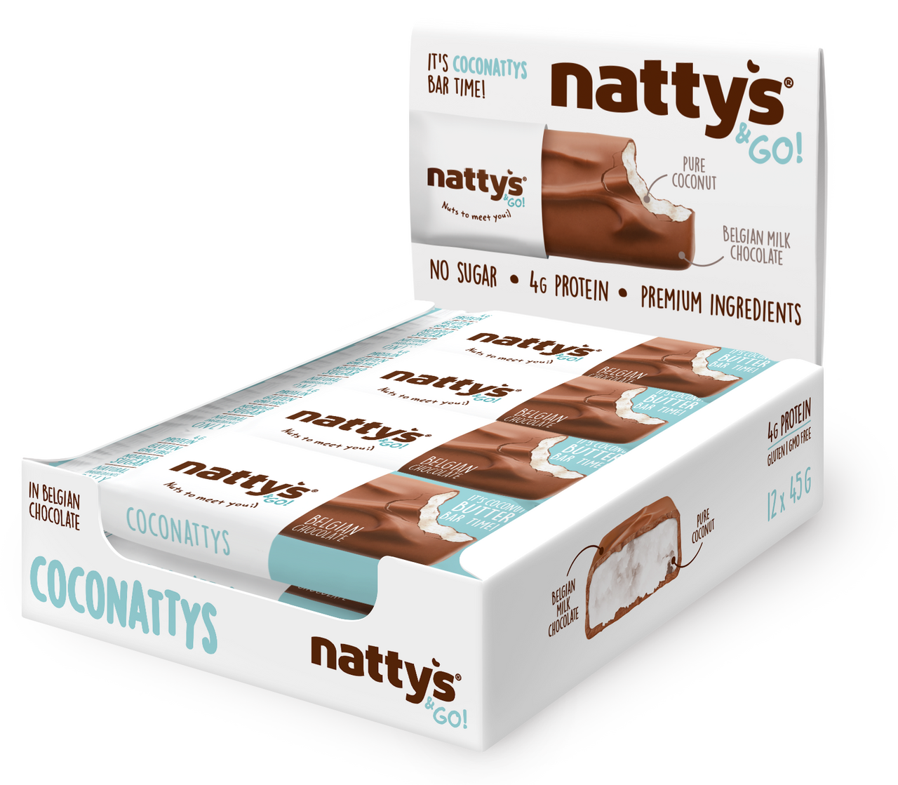 Это батончик с натуральной мякотью кокоса, покрытый слоем настоящего бельгийского молочного шоколада, без добавления сахара, очень вкусный, полезный и абсолютно натуральный перекус, который доставит много удовольствия и зарядит энергией. Нежное кокосовое удовольствие от Nattys всегда с собой, в удобной форме батончика to go — это вкусное и легкое лакомство, идеально для твоего полезного перекуса, без вреда для фигуры и здоровья, без сахара, создан из премиальных ингредиентов высшего качества, с честным и чистым составом. Nattys & Go — это чистый заряд энергии и насыщение на длительное время. В упаковке - 12 батончиков.