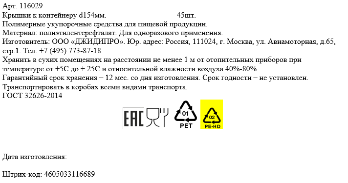 Крышка для салатов и охлажденных вторых блюд.Материал - полиэтилен.Устойчива к агрессивным средам (жирам, кислотам, солям, спиртам). В комплекте с контейнером идеально подойдет для доставки салатов, готовых охлажденных блюд и продажи с полок торговых сетей. Плотно закрывает контейнер, не позволяя пище выпадать или разбрызгиваться.Используется на фуд-кортах, предприятиях общественного питания и кухнях.