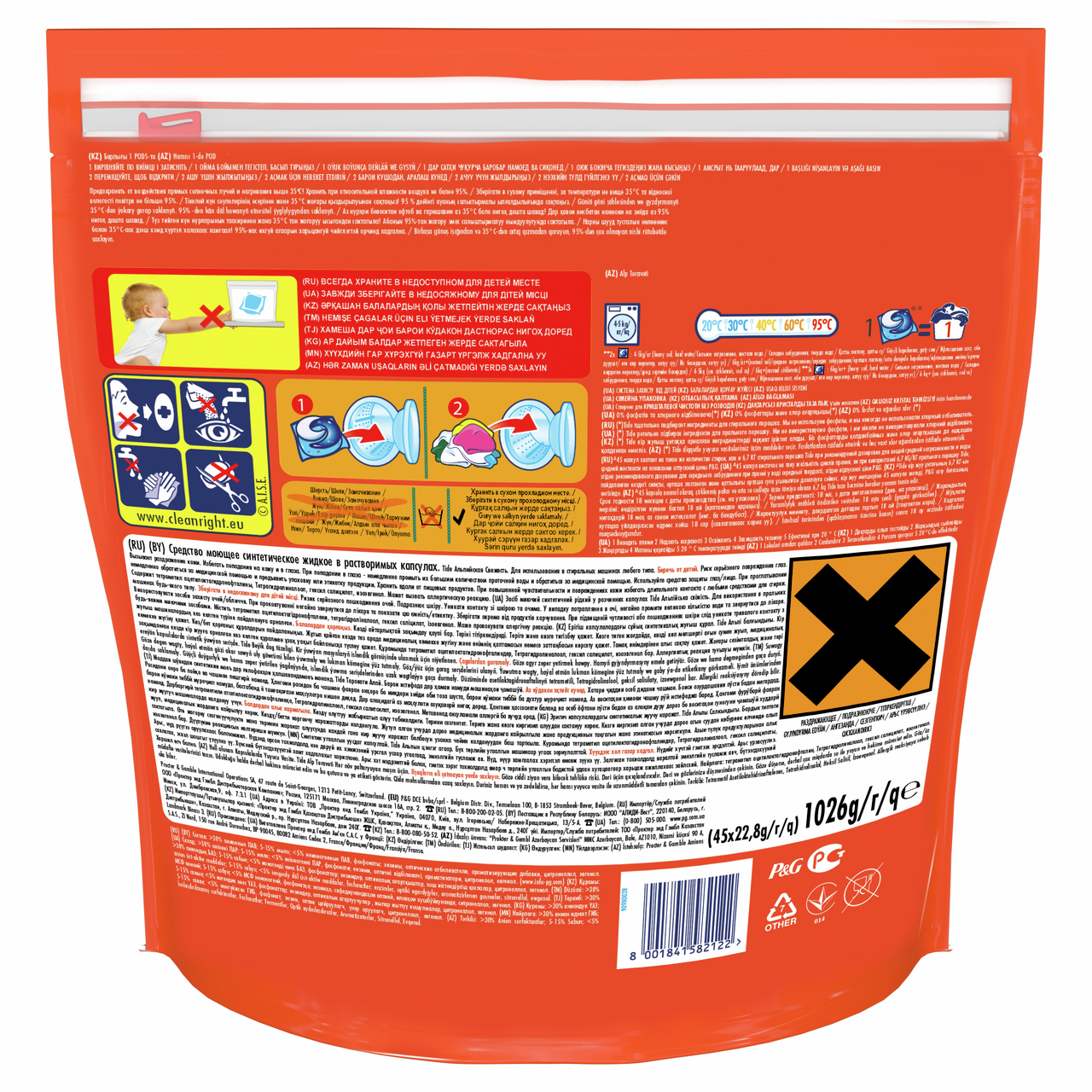 Капсулы для стирки Tide Альпийская свежесть Все-в-1 (16.8г x 45шт), 756г