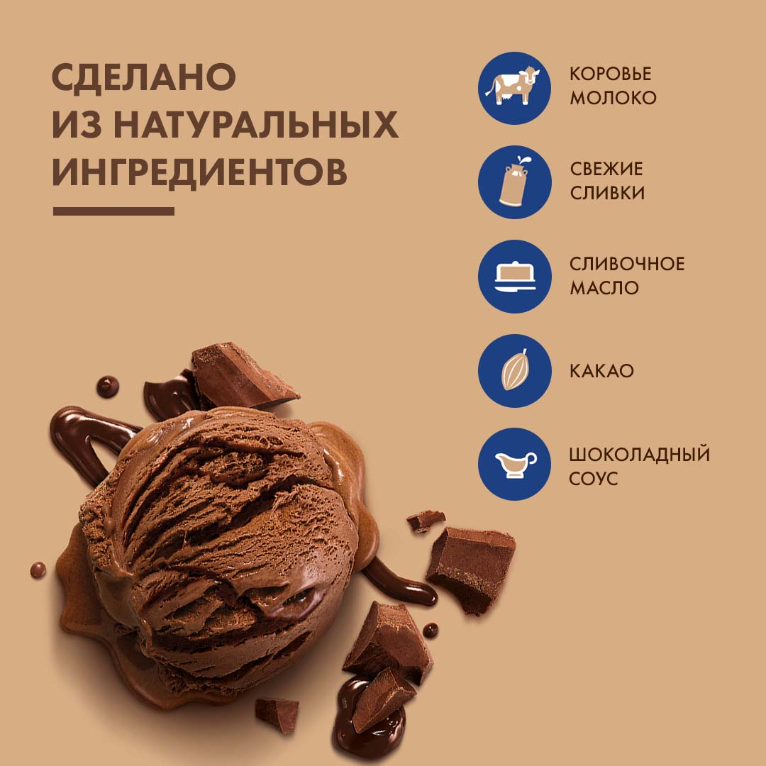 Для тех, кто по-настоящему любит шоколад. Все ноты шоколадного вкуса в мороженом из натуральных сливок с шоколадным соусом внутри.