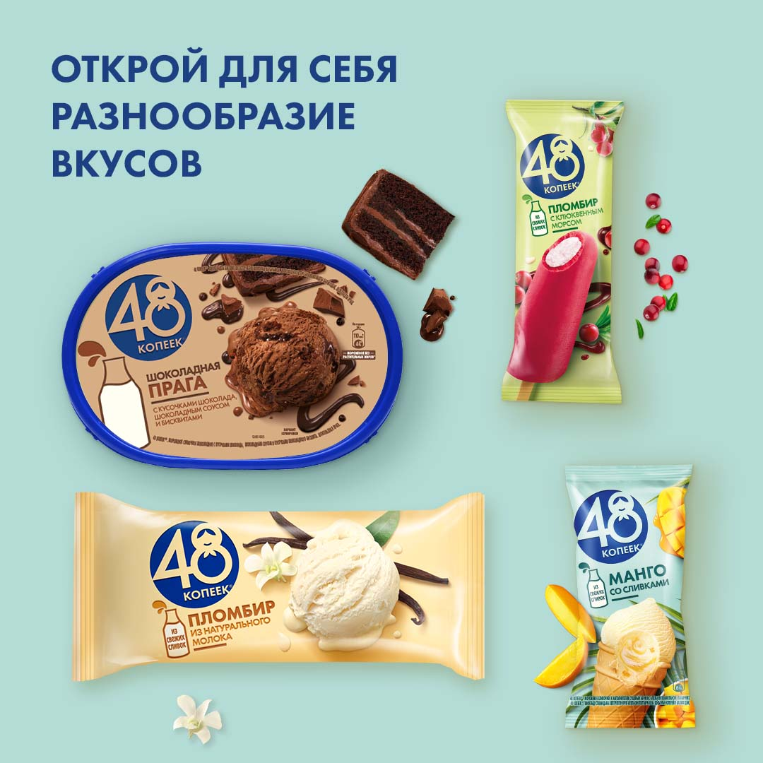 Мороженое сливочное 48 копеек Шоколадное с шоколадным соусом, 232г