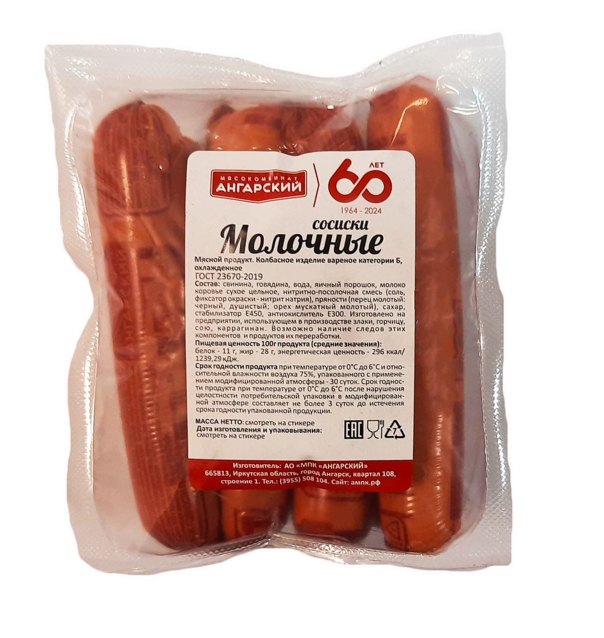 Сосиски Ангарский мясокомбинат Молочные, 480г