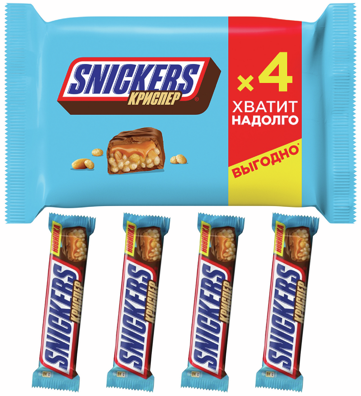 Батончик шоколадный Snickers Криспер 40г х 4шт, 160г