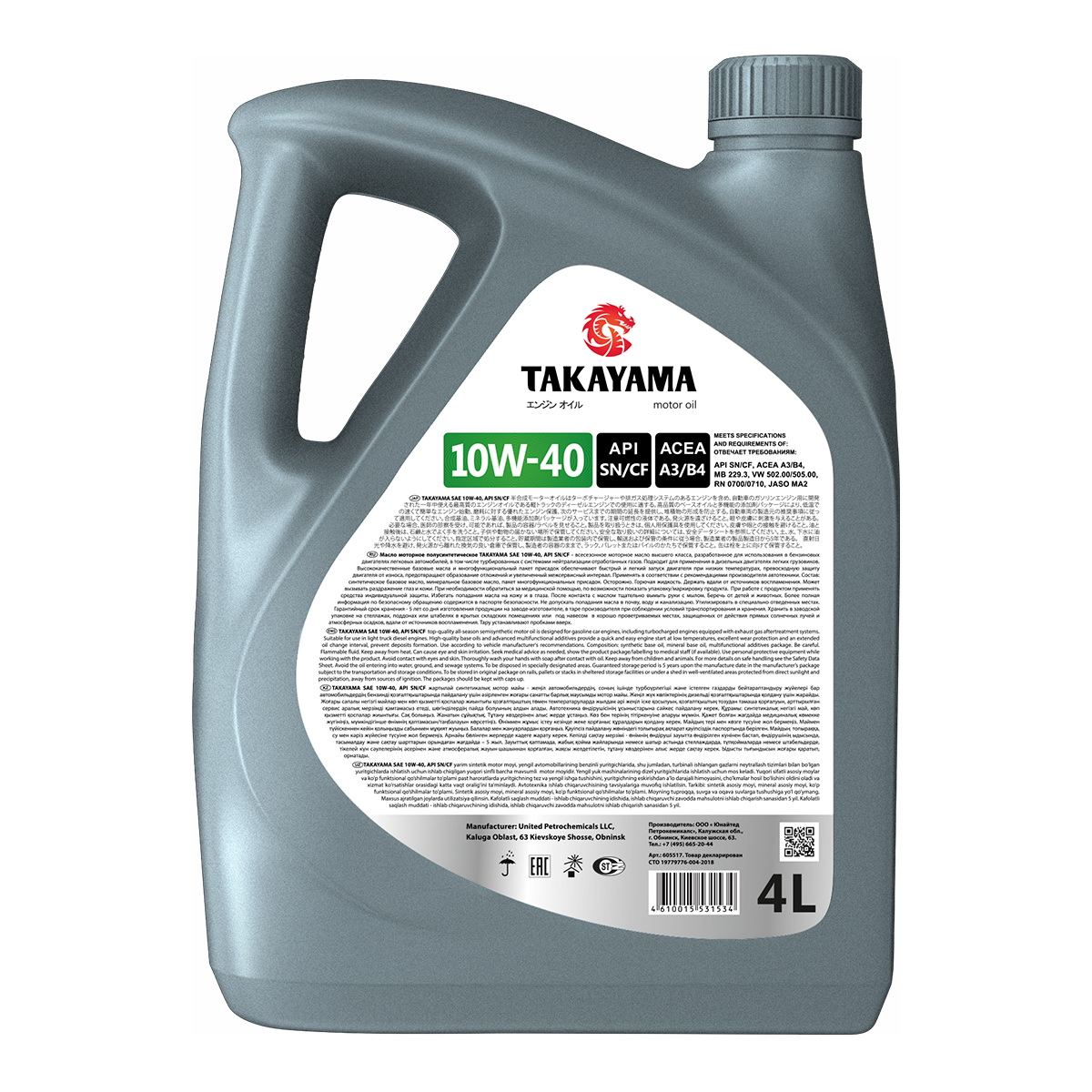 Масло моторное Takayama Sae 10W-40 полусинтетическое, 4л